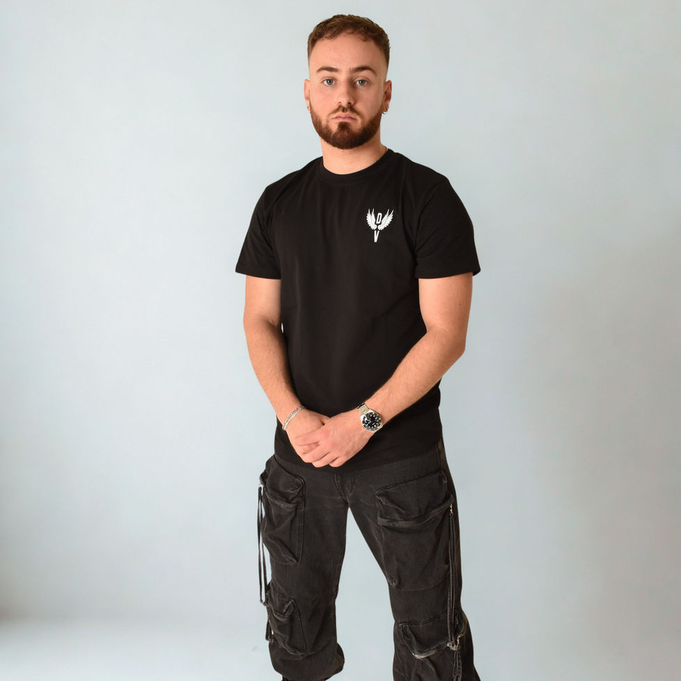 Schwarzes Shirt mit blauem Dream-Print: „God put those dreams in your heart for a reason.“ Eine Erinnerung daran, deinen Weg nicht aufzugeben – in deinem Tempo, mit deinem Glauben.
